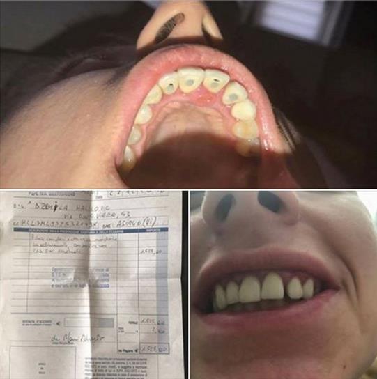 Naravno zubi će biti kao kod filmskih glumica, riječi su zubarice. Međutim, kada su zubi stavljeni prije toga gosp. nije zaliječila niti rane, niti živce umrtvila.